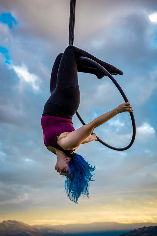 Our Aerial Studio boasts 26ft high ceilings with 8 rigging points and lush crash pads for your comfort and safety. We offer classes in Aerial Silks, Hoop/Lyra, Hammock and Flexibility.