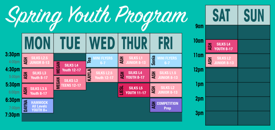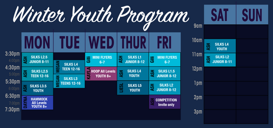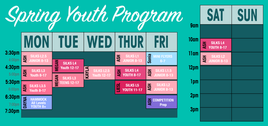 *Siblings and additional class sign-ups receive a 10% discount. To ensure you receive this discount please sign-up and pay for the first class/child and then email ash@peakaerialfitness.com. She will process the remaining payments on your behalf.